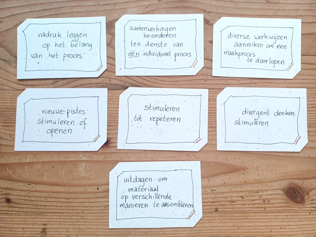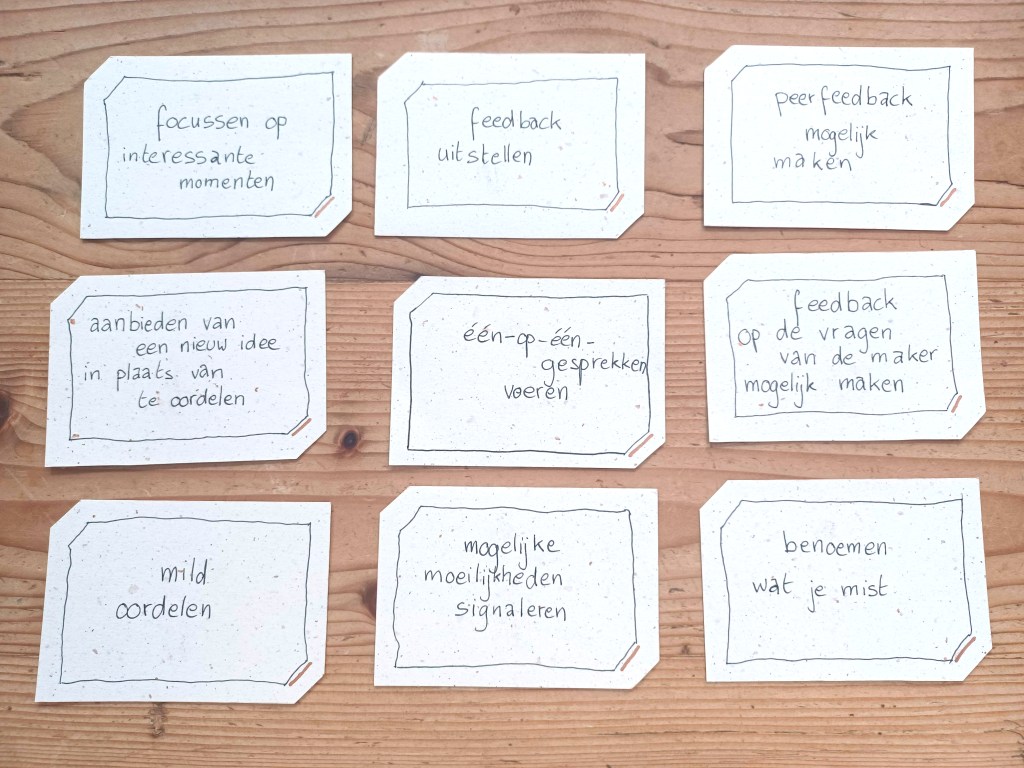 Vele uren keken we op verschillende plekken naar hoe theaterdocenten jongeren begeleiden. Uit onze observatieverslagen destilleerden we een aantal handelingen die we de theaterdocenten zagen uitvoeren. We verzamelden ze onder 8 thema’s: