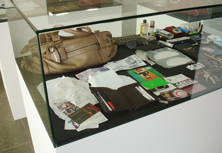 Eén van de elf handtassen en inhoud van Hans Peter Feldmann. © Jerry Hardman Jones