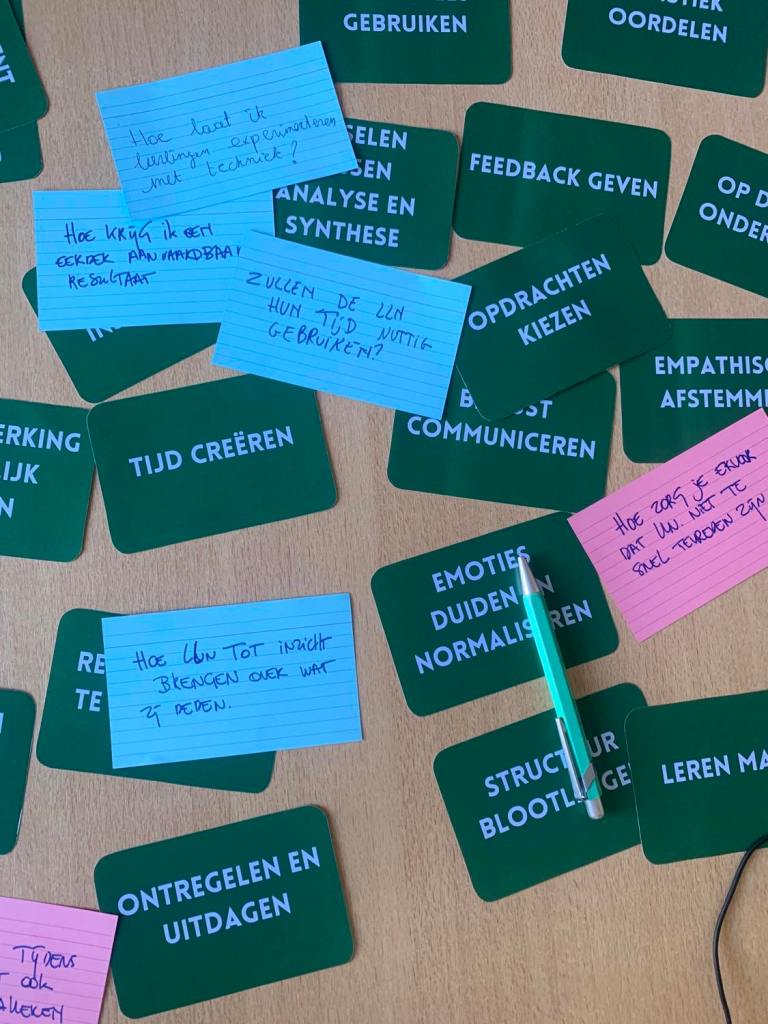 ‘Bij ons was het project super kort: vier lessen in totaal. Drie lessen om eraan te werken en de vierde toonden ze aan elkaar. We hebben de opdracht niet in één keer gegeven maar langzaamaan opgebouwd.