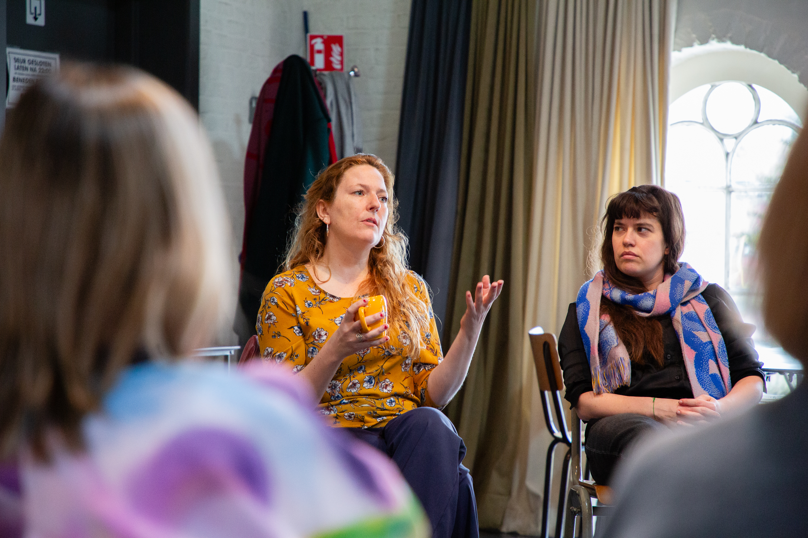 Voor het gezamenlijke gesprek aan het einde van de namiddag hielden we een Octaviaanse discussie: een gespreksvorm waarbij iedereen uit de groep kan participeren en waarbij elke deelnemer de vrijheid heeft om te spreken of niet en dus ook gewoon kan luisteren. Een kleine dertig theaterdocenten en -coaches uit het werkveld kon elkaar op die manier ontmoeten en in gesprek gaan.